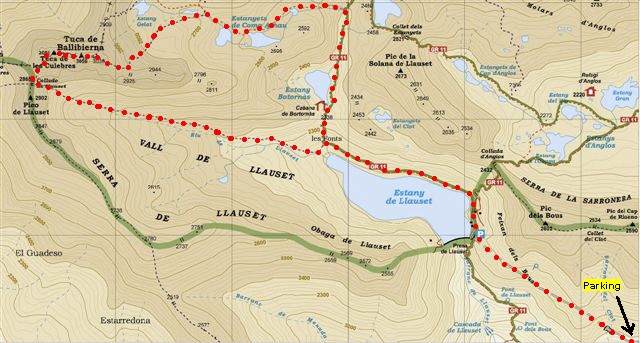 05-08-2008 Parking boca SE del túnel de acceso al embalse de Llauset (2100m) Aragón - Picos de Vallibierna (3067m y 3062m) - Camping Forcanada (850m) Val d´Aran (Cataluña) |