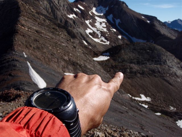 | ... un tresmil apartado de la cresta, a la que tenemos que volver... |
