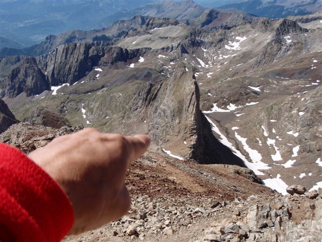| ... hasta la cumbre del Diente Royo (3010m), donde podemos ver nuestro siguiente objetivo el Pico Pavots (3121m)... |