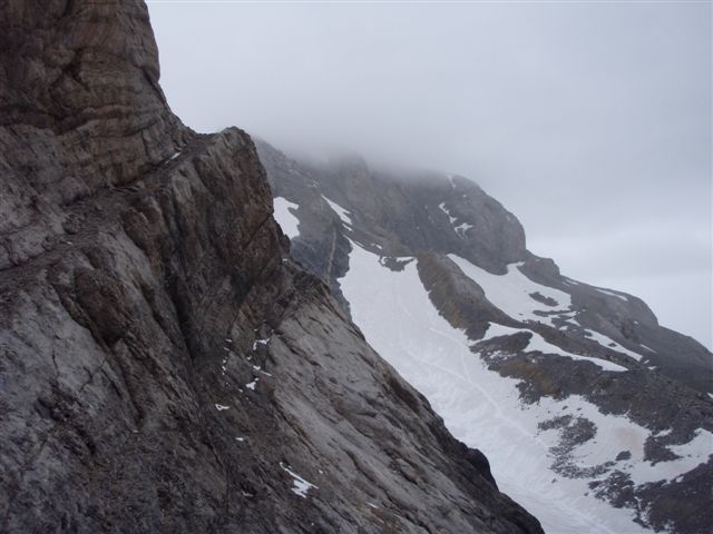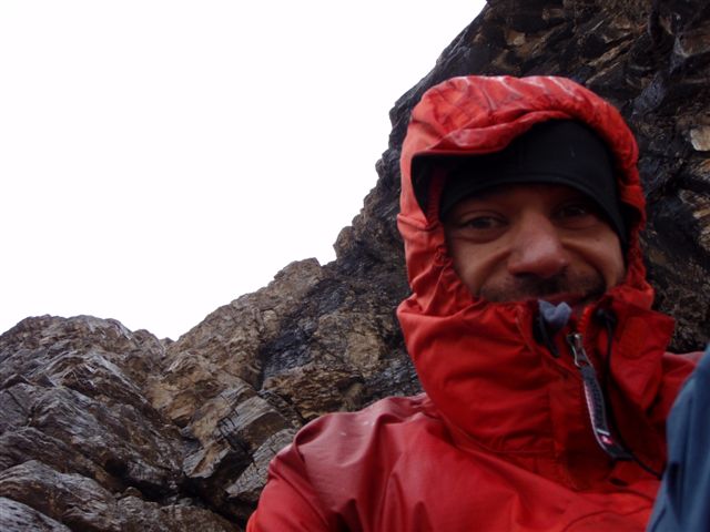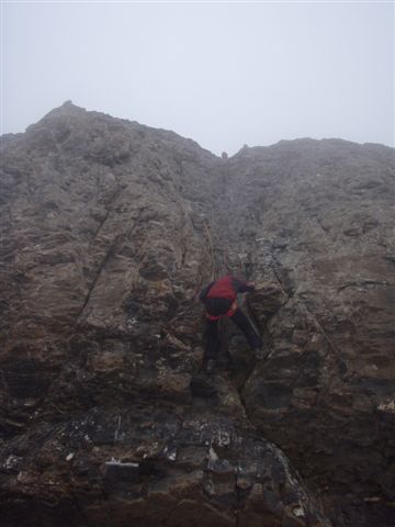 | ... otra cosa es el Cilindro, la trepadita de IIIº está mojada y, aunque se sube bien, destreparla será otra cosa; menos mal que unos montañeros más precavidos que yo llevan un cuerda y me van a esperaran... |