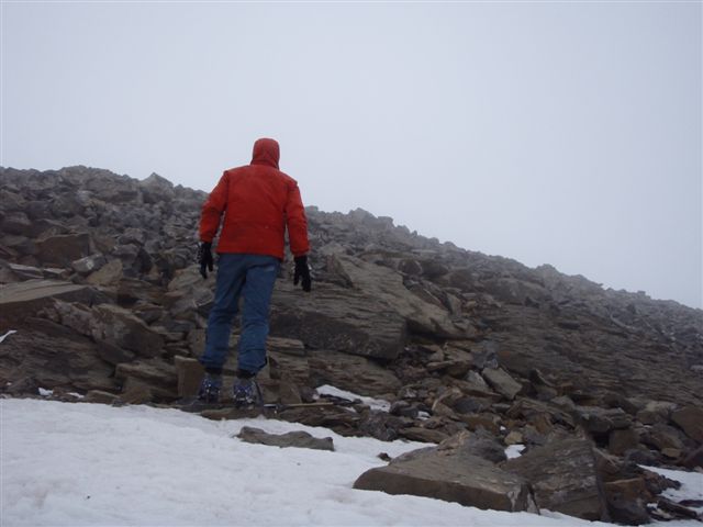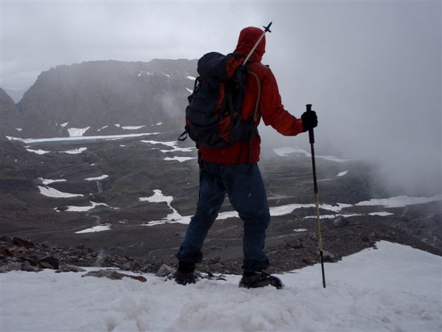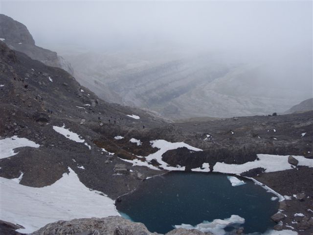 | ... hay que bajar por el glaciar Inferior del Perdido... |
