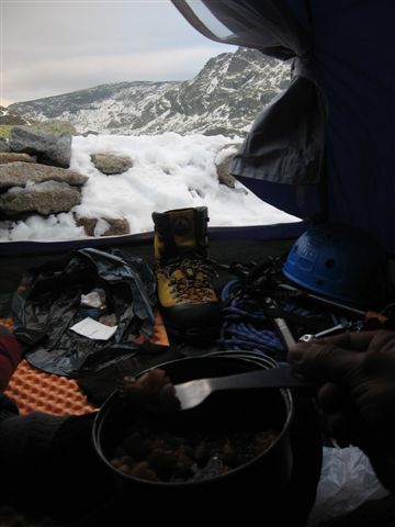 | ... por lo que venimos hasta aquí, por lo que cargamos con todo el equipo para no ir a los refugios... |
