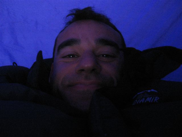 | Bueno, son las 7 de la tarde, el trabajo ya está hecho, nos hemos levantado a la 5 de la mañana, hemos estado 8 horas en la carretera, hemos caminado 4 horas cargados como una mula, hemos montado la tienda... |