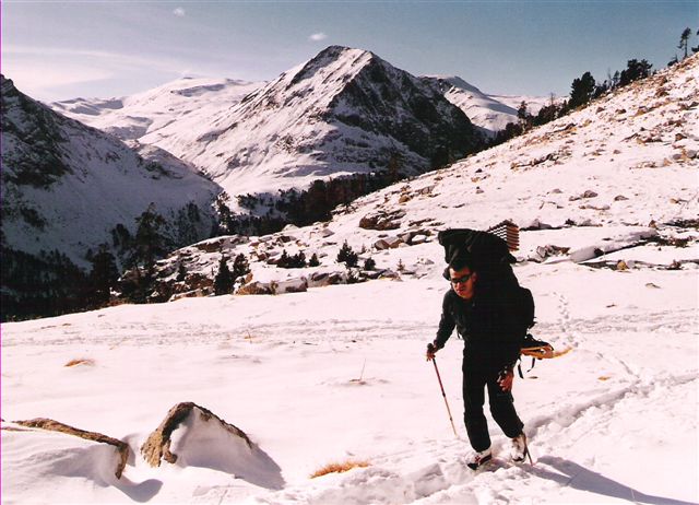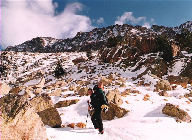 Eran las cinco de la mañana cuando llegamos al Refugio de Coronas (1970m), llevábamos 24 horas en marcha. Por aquel entonces trabajaba de repartidor a domicilio de una conocida cadena de supermercados y, después de una jornada de nueve horas, Pívot paso a por mí con la furgo, a las cuatro y media de la tarde. Y, casi sin darme cuenta, "entre becà y becà", desperté a las once de la noche en Benasque, donde no recuerdo qué comimos, pero si sé que nos bebimos una botella de vino y alguna que otra copa para entrar en calor e irnos hasta Senarta (1367m), hacer las mochilas y ponernos a caminar por la pista de Vallibierna, lugar en el descubrí el estilo de Pívot, al tío le gusta ir a su bola y, como yo ya estaba acostumbrado a ir solo, nos entendimos bien. |