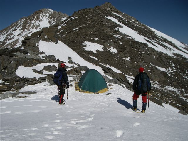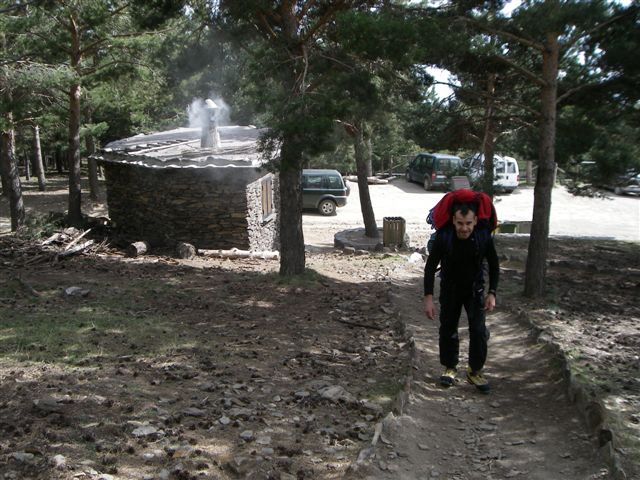 ... al final, los dos cargados como mulas. Esperemos que merezca la pena, porque la nieve desde aquí brilla por su ausencia, y aquí sin nieve no hacemos nada... |