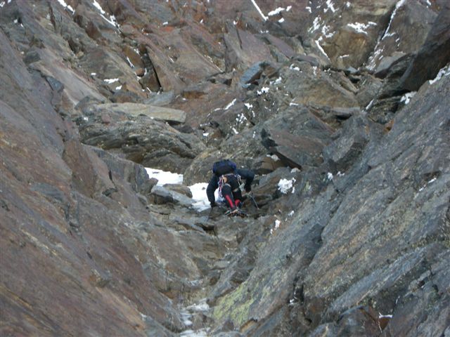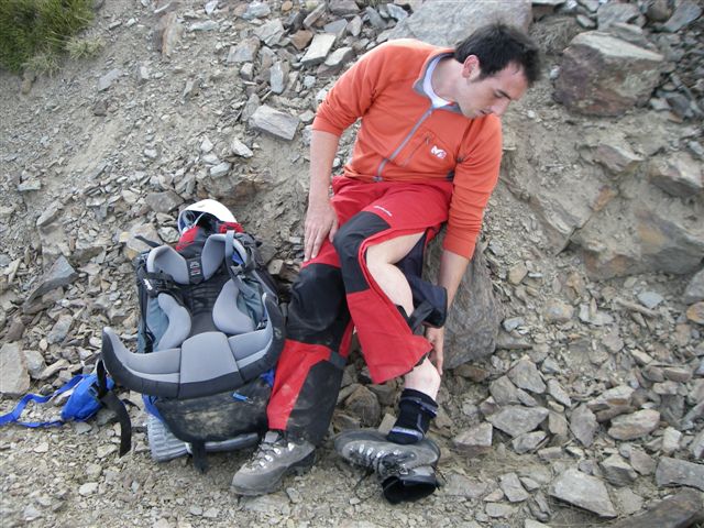 ... controlando la continua caída de piedras que, aunque pequeñas, cortan como cuchillos (una de ella me cortó el plumas)... |