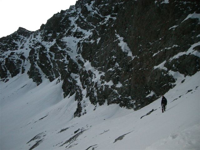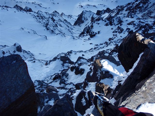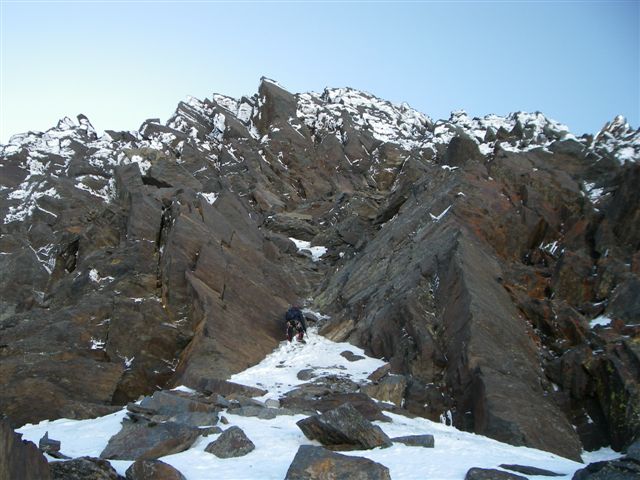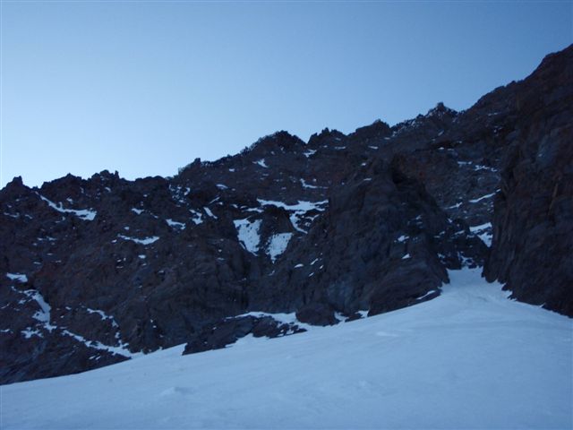 ... dejando a nuestra derecha, en el centro de la pared, la ruta directa hacia la cumbre... |
