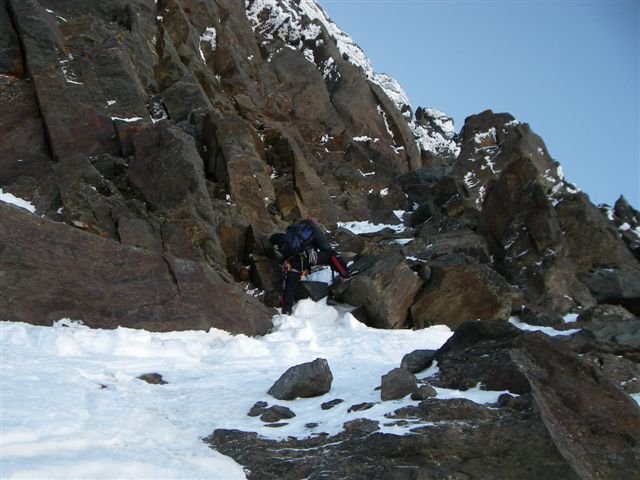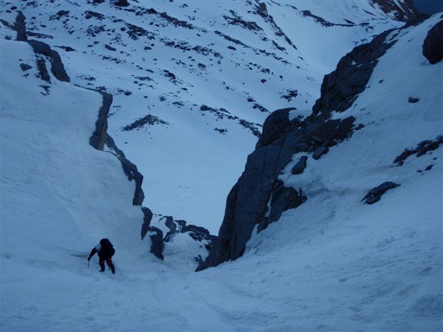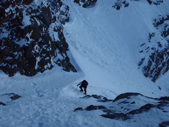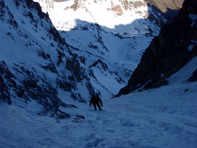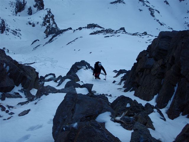 CARA NORTE DEL MULHACÉN (3482m) Sierra Nevada (Granada) Canuto Central AD inf, (550m) 29 y 30 de marzo 2008 |