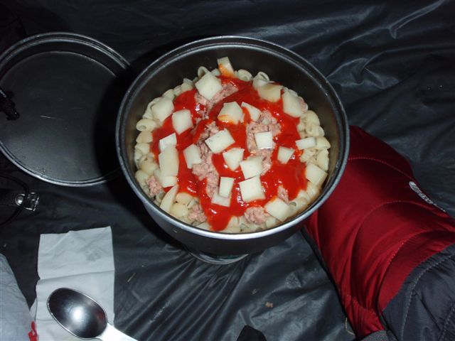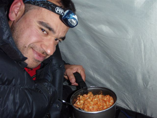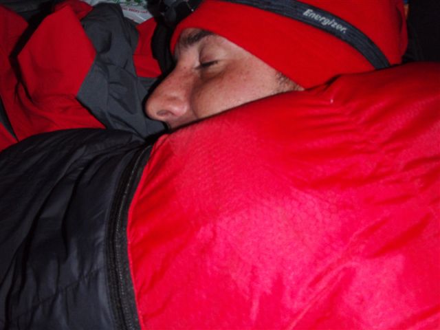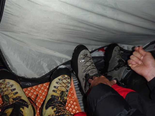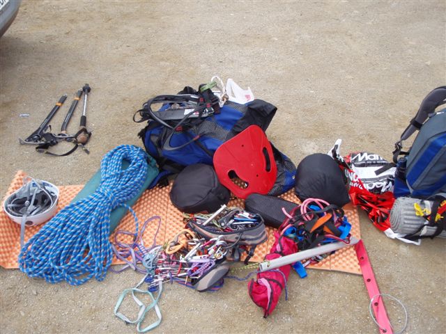 ... y 12 kilómetros, 4 horas de aproximación, con todo esto a la espalda, para nada... |