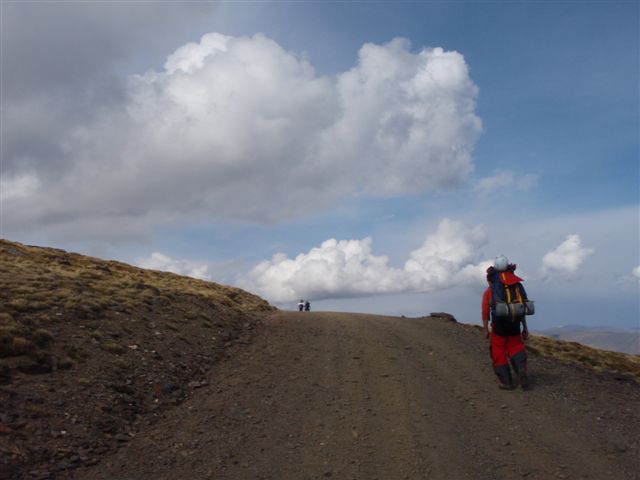 ... por una larga pista que, sin perdida alguna, te deja en las faldas del Mulhacén (3482m)... |