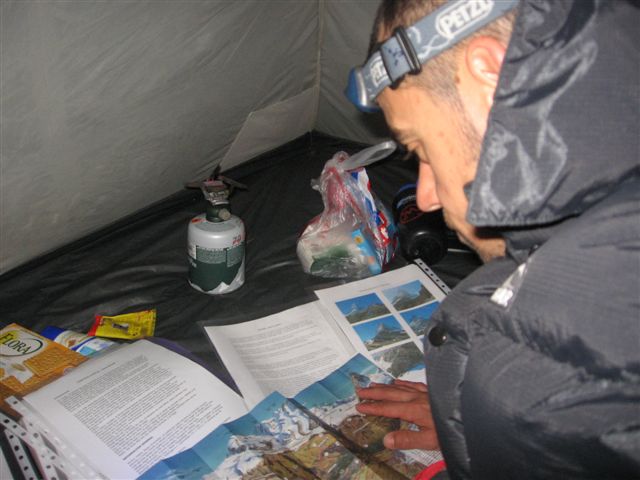 | Como sé bien que el éxito de este proyecto depende muy mucho del peso que cargué en mi mochila, preparo cuidadosamente la comida para la ascensión, no tiene que sobrar nada, pero tampoco faltar... |