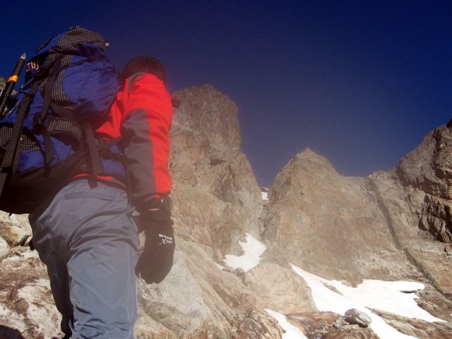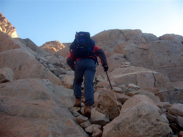 | ... y que estoy pasándolas "putas" para trepar el primer paso de la Brecha con la mochila que llevo. |