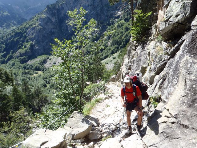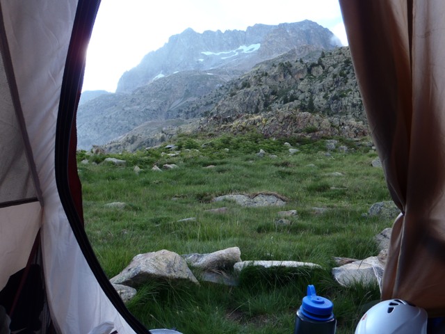 | ¿Por qué estamos aquí? Buscando un lugar para acampar cerca del ibón de las Ranas (2150m). |