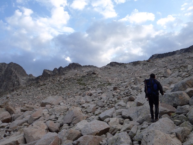 | ... entre los bloques de piedras del collado de la Rimaya (3234m)... |
