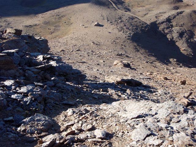 | ... y el sendero que rodea al Veleta (3396m), que no recomiendo a nadie, porque simplemente hay tramos en los que no hay sendero, sólo hay vacío. |