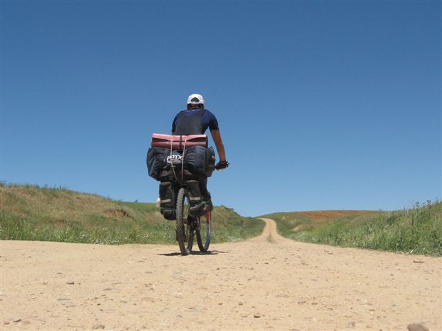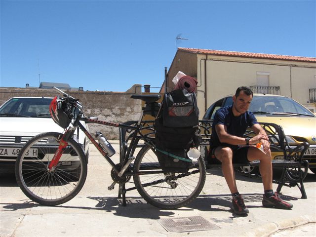 | ...y allí coincido con unos mallorquines que vienen en bici por la Vía de la Plata. |